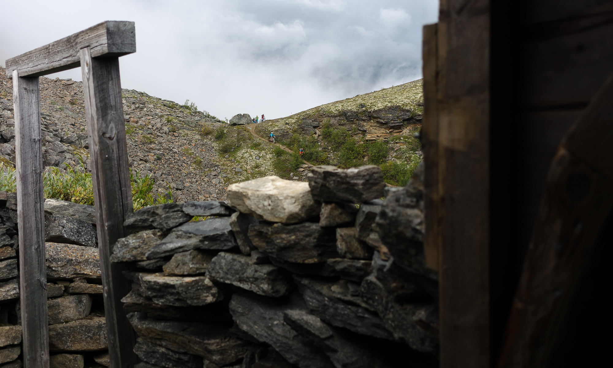 I was supposed to be the guide, but it turned out that I knew everyone in the group, and everyone knew the route, so it was more like a regular ride with friends. Anyway, the climb (because any good ride starts with a climb, or a shuttle, or maybe a lift...) goes along an old road built by Russian prisoners of war during WW2. It switchbacks its way up the steep mountainside, sometimes it is more than a meter wide, sometimes almost consumed by time, harsh weather and rockfall.