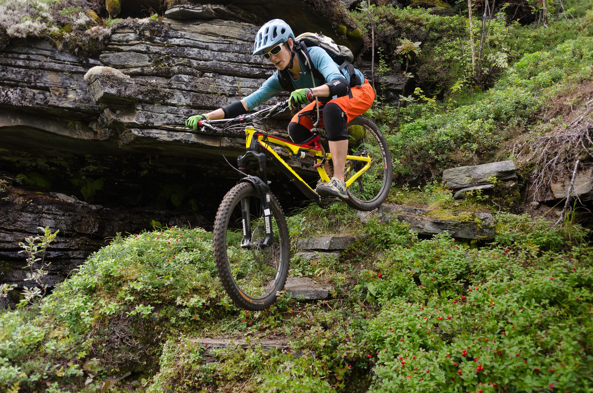 It was GLORIOUS. The top bit was loose, dry and riddled with switchbacks. Further down it got more solid but damp, with slippery rocks polished from thousands of Nazi soldiers boots keeping us on our toes. The straights between switchbacks got longer and longer, and speeds were higher and higher when they inevitably appeared without warning, with the damp rocks not helping in providing grip for braking or turning.