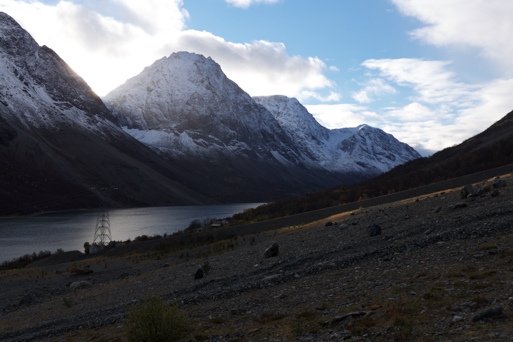 It's way too early in the morning, pretty much pitch black, and I'm parked at a shady gas station waiting for Marius. Thank all things holy (mostly my own good planning in this case) for the coffee I'm sipping. Snowline has been creeping lower and lower these last few days, and as soon as Marius arrives we will drive to Lyngen and check out conditions on the glacier on Store Kjostinden.